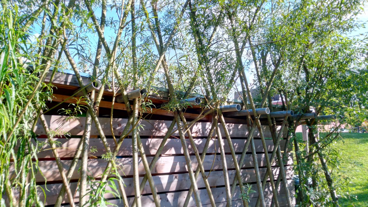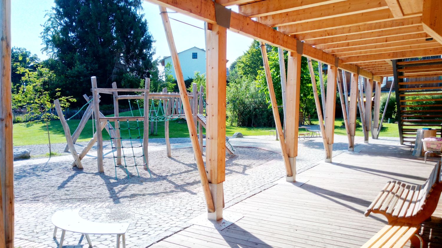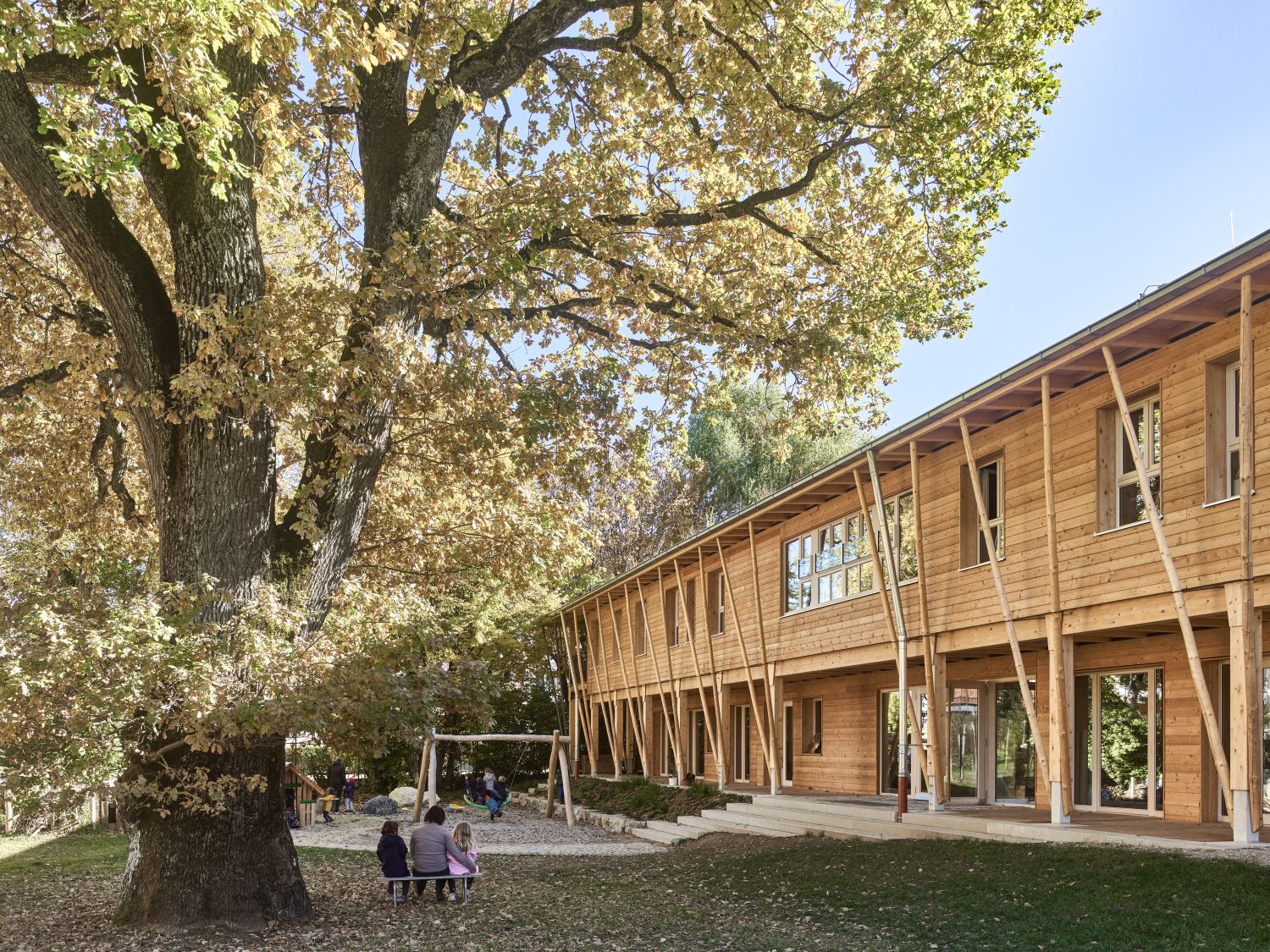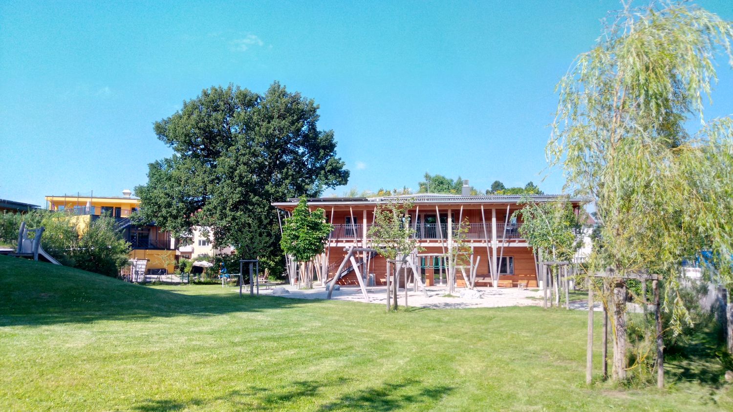 Der Kindergarten ist Teil des Campus St. Michael und ist in das Gesamtkonzept des Campus eingebettet. Herzstück des Außenbereichs ist die alte Eiche, um die sich eine große Wiese legt. Als weitere Besonderheit gibt es ein eigens entworfenes und in einem Büroworkshop erbautes Weidenhaus, das als Geräteschuppen dient. Die tragenden Teile sind lebende Weiden, die das Gründach ohne weitere technischen Unterstützung tragen.