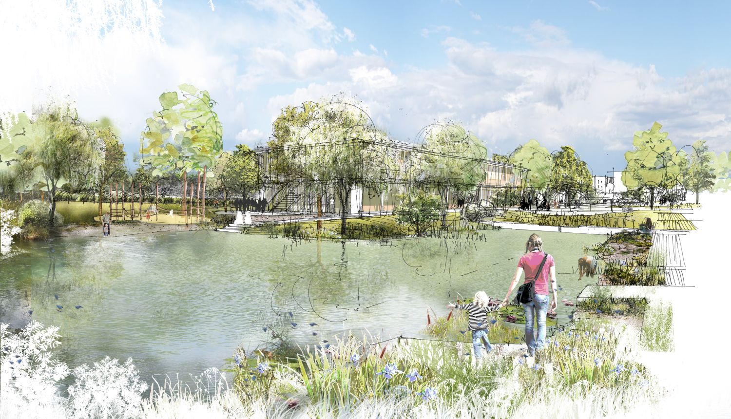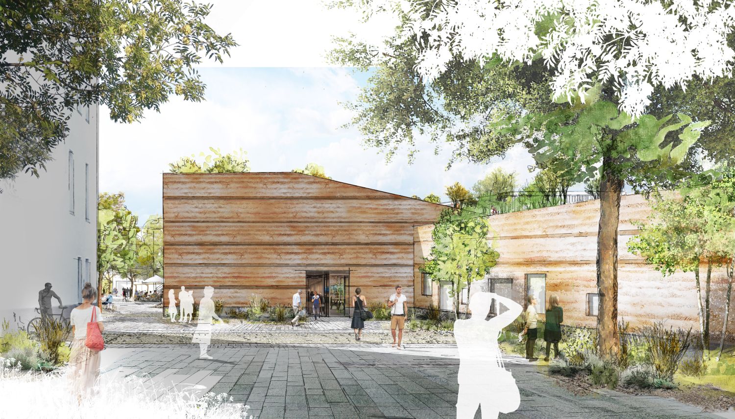 Auf über 4 Hektar finden neue Nutzungen wie ein Kindergarten, Fortbildungsräume, ein Café und vieles mehr ihren Platz. Im Dialog mit den Akteuren des Campus entwickelt sich unsere Interpretation, wie Ort, Funktionen, Vision des Campus eine besonderen Charakter entwickeln können. Die Ökologie der Campusfreianlagen wird mit verschiedenen Mitteln erlebbar gemacht und kommuniziert. Möglichst viel Fläche soll sich naturnah entwickeln können, dabei wird die langfristige Pflege und Entwicklung einbezogen und mit vorbereitet und eine Ästhetik entwickelt, die sich nicht aus Design, sondern aus der Struktur konsequenter Wiederverwendung im Sinne des „Reduce, Reuse, Recycle“ ergibt.